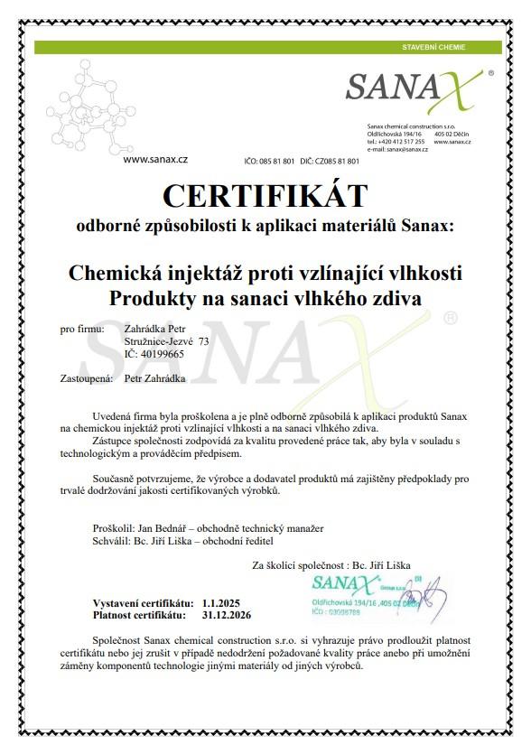 Víme, že sanace vlhkého zdiva je odborná činnost, která vyžaduje zkušené pracovníky. Proto každý rok pravidelně školíme naše zaměstnance certifikovanou firmou.